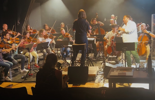 In dieser Probe geht es um das Zusammenspiel, das Timing zwischen dem Orchester, der Band und den Musikern. Die Stücke werden gespielt, Songs von den Beatles, Joe Cocker und anderen, zwischendurch auch Mozarts Klarinettenkonzert, der zweite Satz. Der Dirigent, André Bellmont, greift immer wieder ein, korrigiert und lobt, dies vor allem, denn es klingt schon wunderbar, obschon es erst die zweite Probe auf diese Art ist.